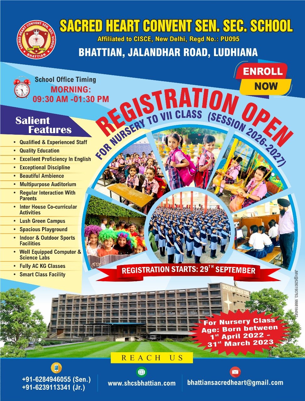 Sacred Heart Convent School is affiliated to the Council for the Indian School Certificate Examinations (ICSE), New Delhi, and recognized by the Government of Punjab. From LKG onwards, boys and girls are prepared for the Class X Examination conducted by the Council. It is a privately run, co-educational Minority School. The School caters primarily to the needs of the local communities. The type of education imparted in the School takes into account the whole person, paying heed to each child’s background and personality, with the love and patience exemplified in the life and teachings of Jesus Christ. Thus, young people will be gradually led to self-formation and to the development of a sense of responsibility for oneself and concern for others.